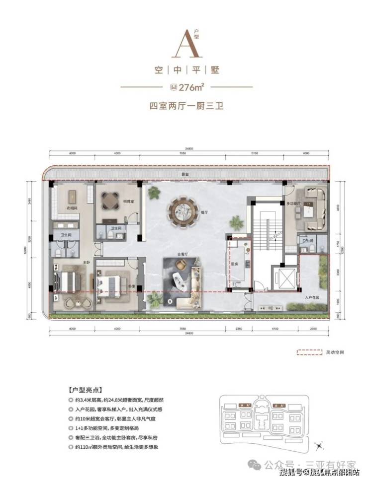 产品户型:建面约276㎡企业级大平层、建面约231-245㎡花园式企业合院