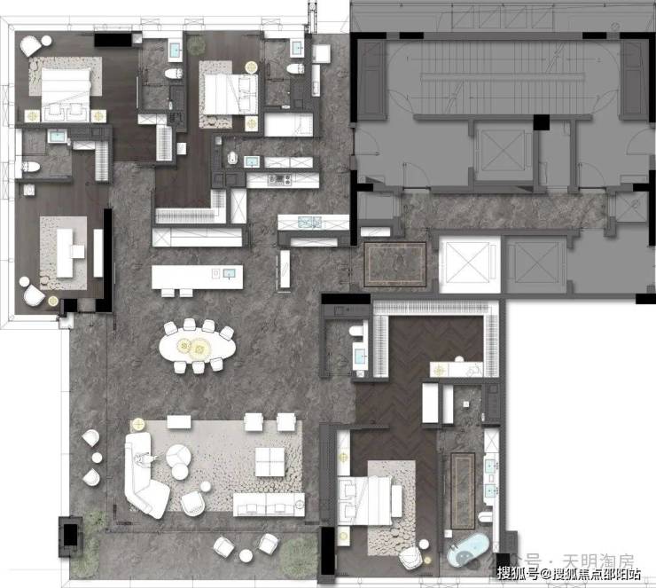 3梯两户约380㎡大平层,专梯入户,镜像对称户型4套房阔绰空间,专梯入户,私密性极强