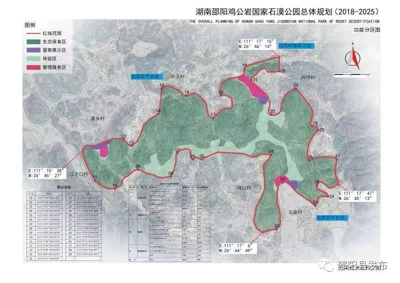 据悉,该公园建设拟划分为生态保育区、宣教展示区、体验区和管理服务区4个功能区,建设期为2018~2025年,分为近期、中期和远期三期进行。届时将以鸡公岩石漠公园的济公庙为龙头,以济公洞和河伯岭文化为重点,与邵阳县的天子湖国家湿地公园、河伯岭森林公园等景区相联接,合理利用岩溶地貌与自然、人文景观资源,适当开展宣教展示、科学研究、生态旅游等活动,具有显著的生态效益、经济效益和社会效益。