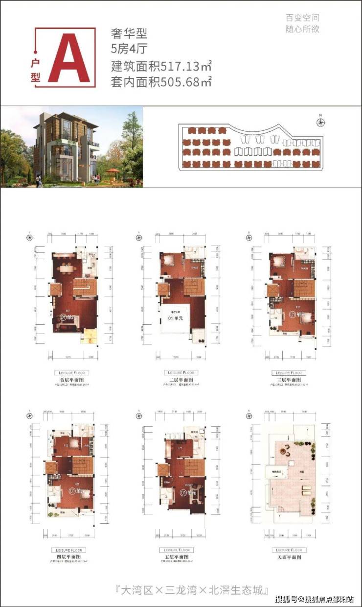 由88套,建筑面积477㎡——677㎡真双拼稀缺美墅组成