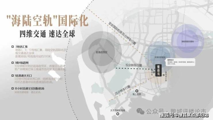 地铁2、11、13号线汇集,项目距离地铁2号线海月站(A出口)约200米;3横4纵路网:10分钟即可到达前海自贸区,至广州等其它珠三角城市也可快速无缝连接;5分钟可到深圳湾口岸、经跨海大桥1小时内可达香港中环和香港国际机场。