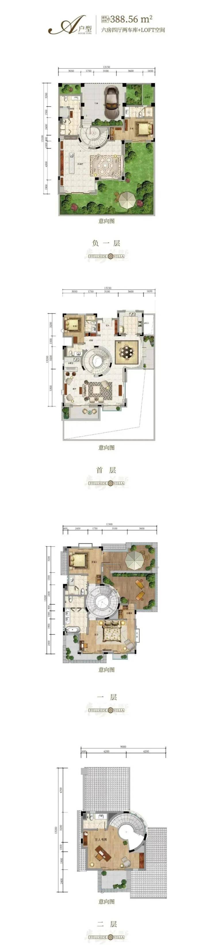 1、半山美墅(达西庄园)别墅组团,单套建筑面积:约350-388㎡
