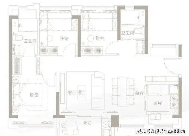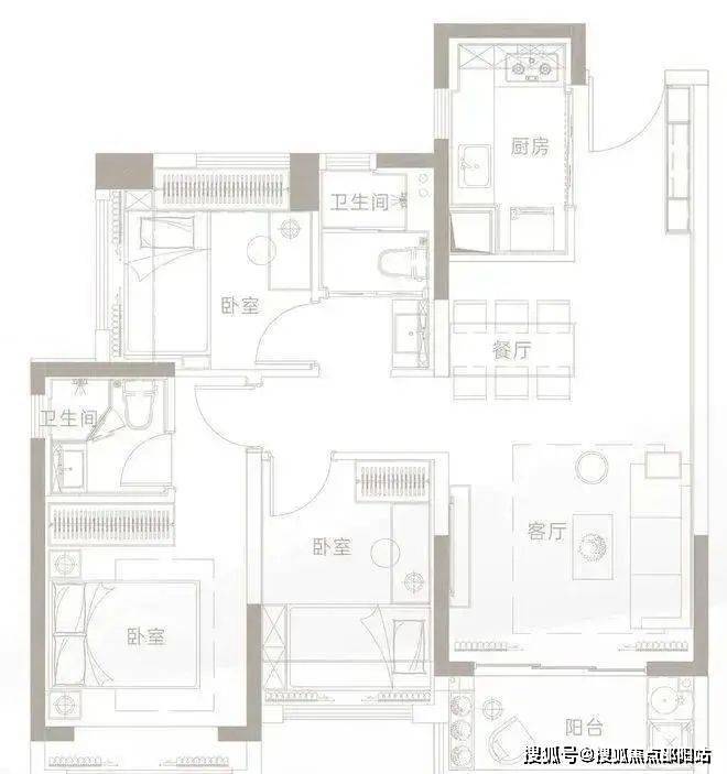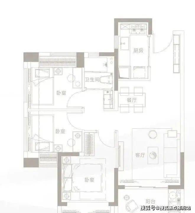 三卧室均带飘窗,空间利用率高