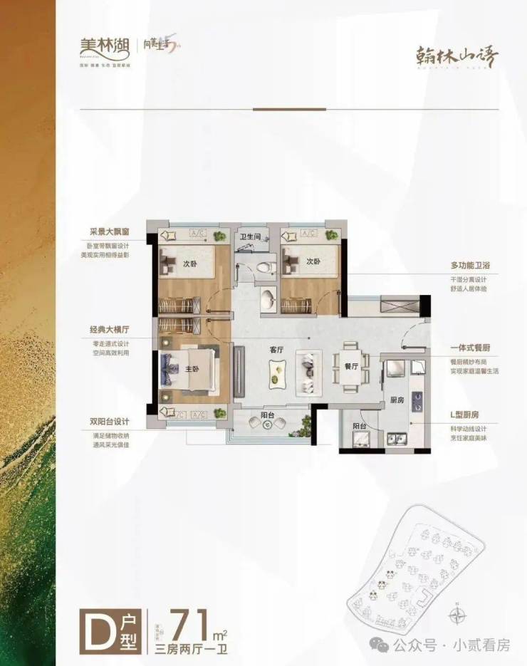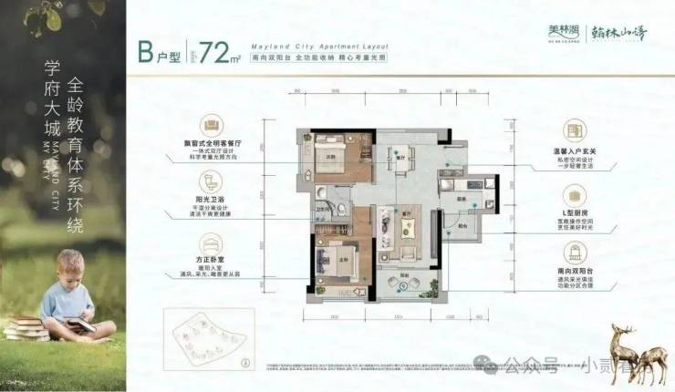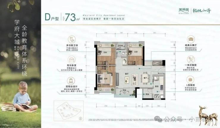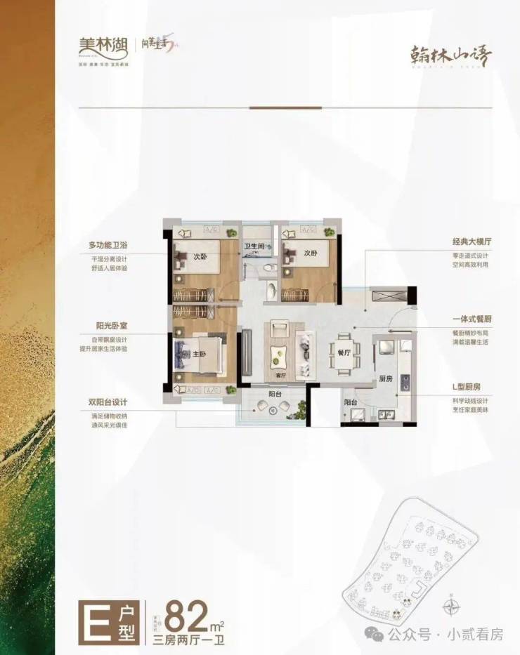 产品面积涵盖73-95㎡二房至三房,2梯6户设计,组团内设有肉菜市场、幼儿园、公交首末站等公共配套,与已开学的美林湖九年制公立学校一路之隔。