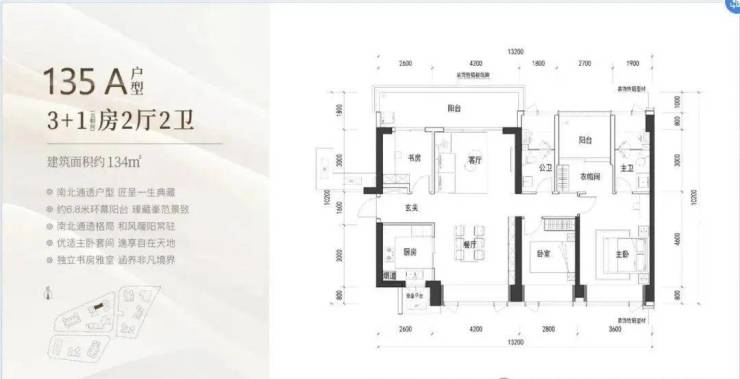 135㎡为B户型横厅格局