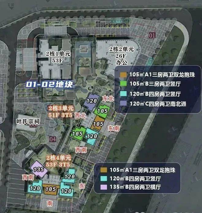 105㎡有两个户型,分别为A1双龙抱珠以及B户型传统竖厅