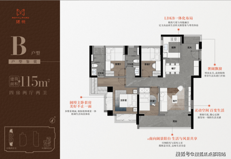 115㎡的4房2厅2卫,折后总价750-850万/套,单价6.52-7.39万/㎡。