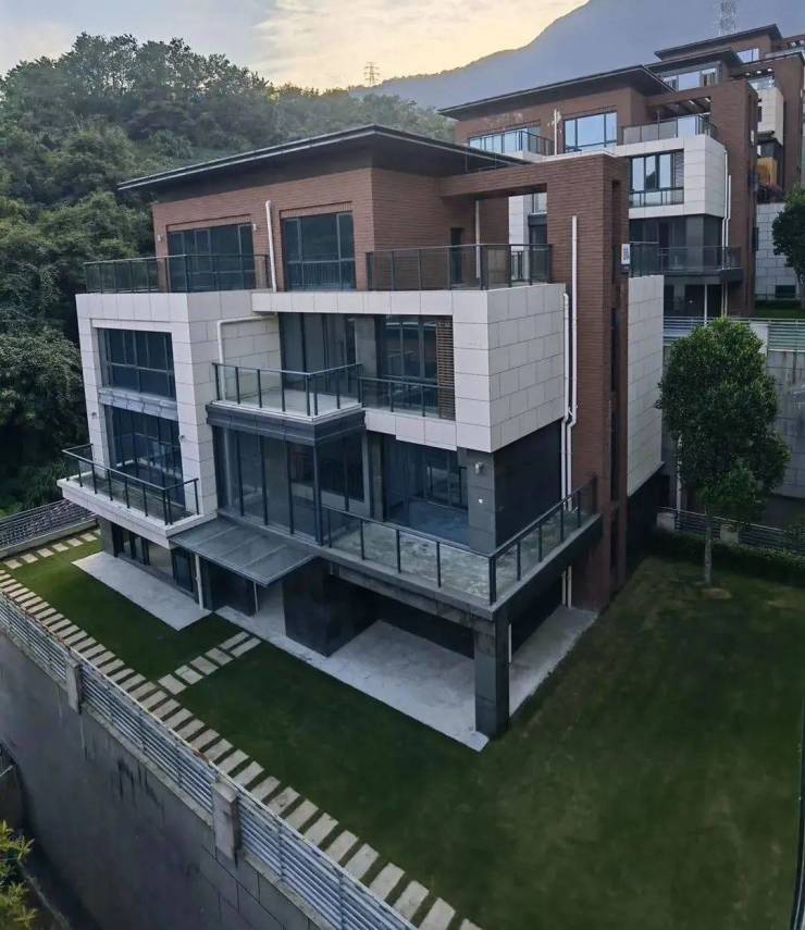8、别墅外立面采用进口天然石材和高档劈岩砖,外立面设计简洁、时尚、大气,以顶级精工打造片区标杆别墅产品,呈现豪宅尊贵的品质生活。