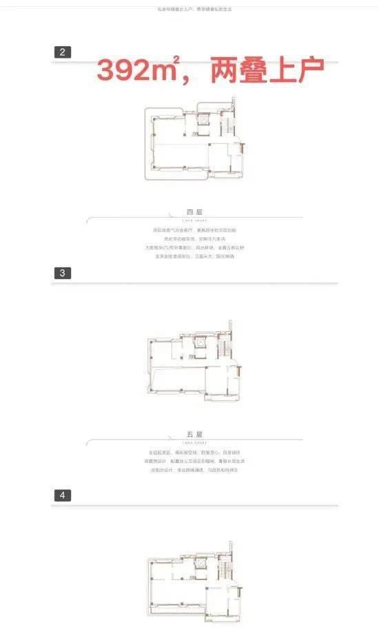 ●产品户型:两叠(上叠392㎡、下叠437㎡),三叠(上叠 285㎡、中叠279㎡、下叠305㎡)