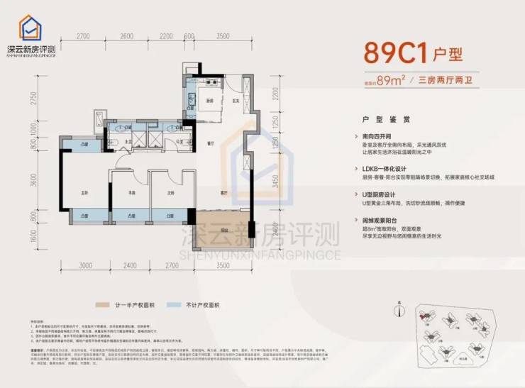 面积:本次首推1栋面积89㎡三房两卫,108㎡四房两卫