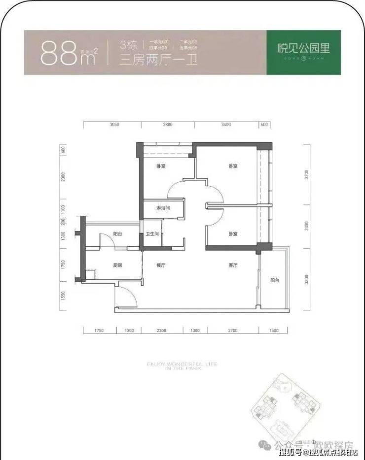 85㎡三房一卫:经典竖厅+双开间阳台,东南看公园,总价310万起,刚需上车首选