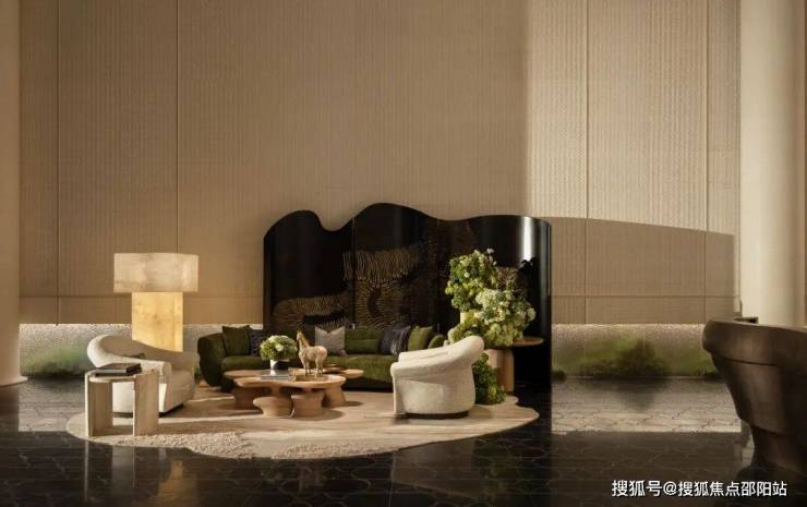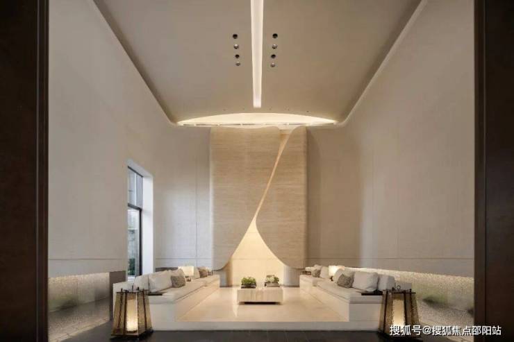 ▲大堂中对称分布的两个会客厅,保利·天奕,广州,实景图