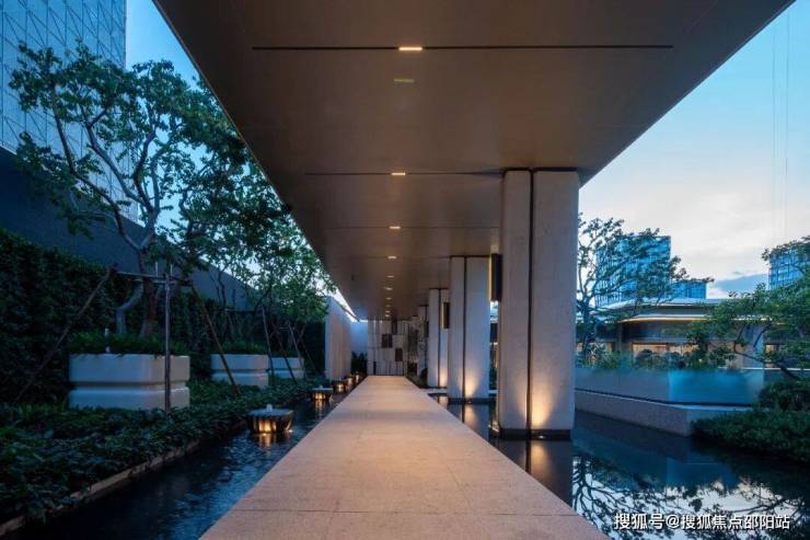 保利·天奕一整排厚重的廊柱,仿佛是轻盈地漂浮在水面上,它们是廊柱、树影、水面与涌泉的共同体。它们共同创造了静谧的感受。这种静谧,映射的是你内心的秩序。《诗经》中那句「万舞有奕」,这里的「奕」就是秩序感的意思。当你走在廊下,你也会想起法国诗人波德莱尔的诗句:「一切只是秩序和美,奢侈、宁静和沉醉。」