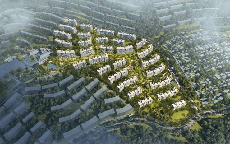 峡谷西侧7期作为最欢乐热闹的溪谷公共活动区,由庆典草坪、金色池塘、雨林商业街、亲子戏水区组成。金色池塘借助自然的高差错落,塑造了一处野趣梯田池塘,日闻蝉鸣,夜听蛙声。彼岸是雨林风情商业街,美轮美奂的夕阳观赏点,阳光照在池塘上,泛起粼粼金光。