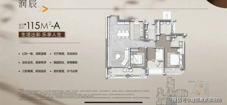 ③115㎡4房都是单梯腿,西南和东南向南北对流户型。首开96套:西南64套(B户型),东南32套(A户型)。
