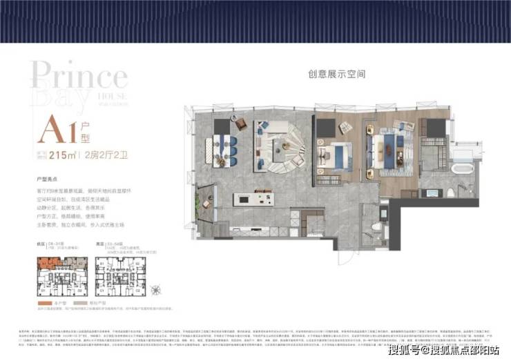 大平面大尺度定位,层高约3.6米,横厅设计确保最大化观景面,全户型纵享环幕视野。项目打造主力建面约215-415㎡纯粹品质公寓共191席,顶层为建面约1270㎡公寓产品。