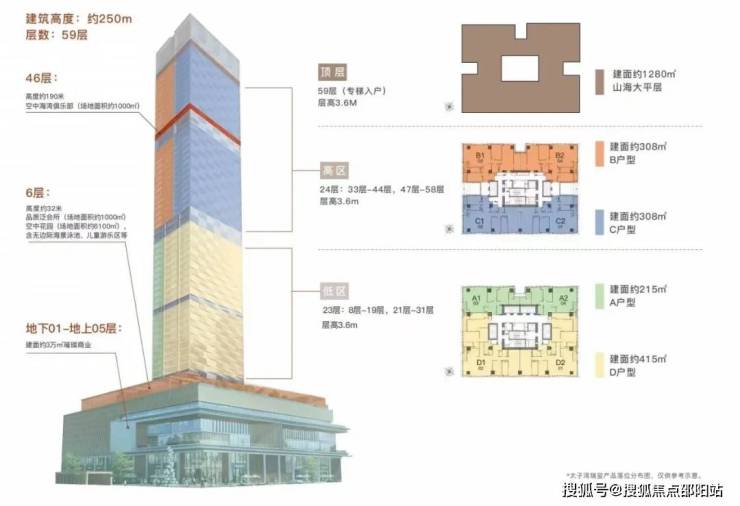 ◎建筑总层数:地下01-地上05层为商业、地上08-59层为品质公寓