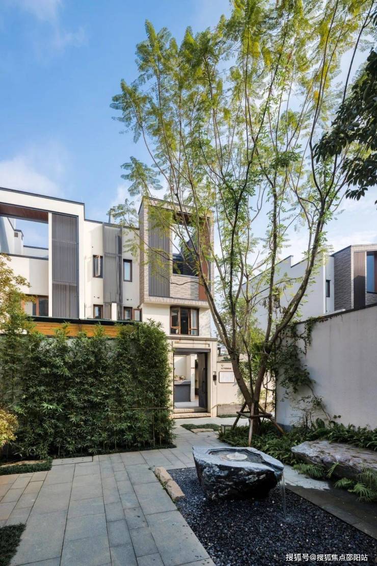 三街五巷七园移步异景,建筑选用深灰外墙砖搭配浅色质感涂料,金属线条与木质窗套融合,简繁得当,完美再现岭南园林石墙黛瓦的清幽无邪。