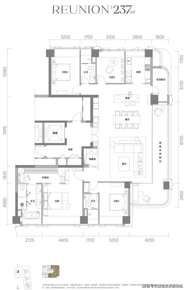目前项目实体展厅和样板房已开放,参观需验资1000万,预计月底开盘,首批将推售1栋小高层住宅,建面约197-235㎡的大平层产品。首推仅40套!