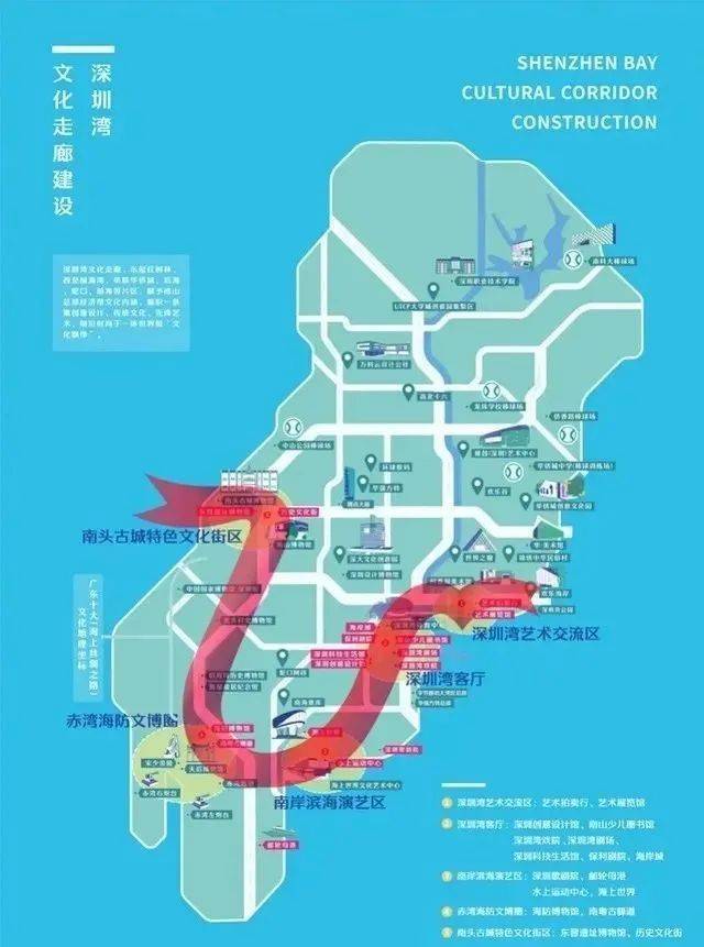 文体配套:蛇口深圳歌剧院(建设中)、文化艺术中心、南海意库、蛇口海洋科普馆。深圳湾公园,海上世界