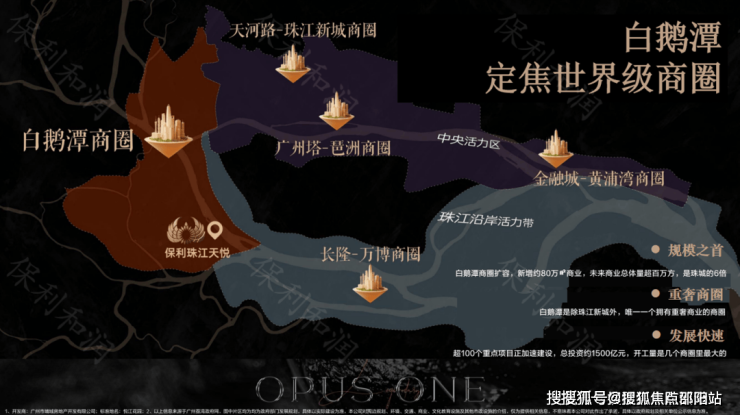 白鹅潭区域发展前景广阔。今年3月官宣扩容,以200万㎡的体量登顶广州5大世界级商圈之首,是环珠江经济带最后一片可大规模连片开发的土地,也是除珠城外唯一拥有重奢商业的商圈,成为未来广州城市发展的重要方向。保利珠江天悦坐落于此,尽享区域发展红利。约11公里沿江总部经济带集聚三类地标,项目既能辐射城市资源,又背靠医药港板块,承载着未来港湾城市的繁华配套。
