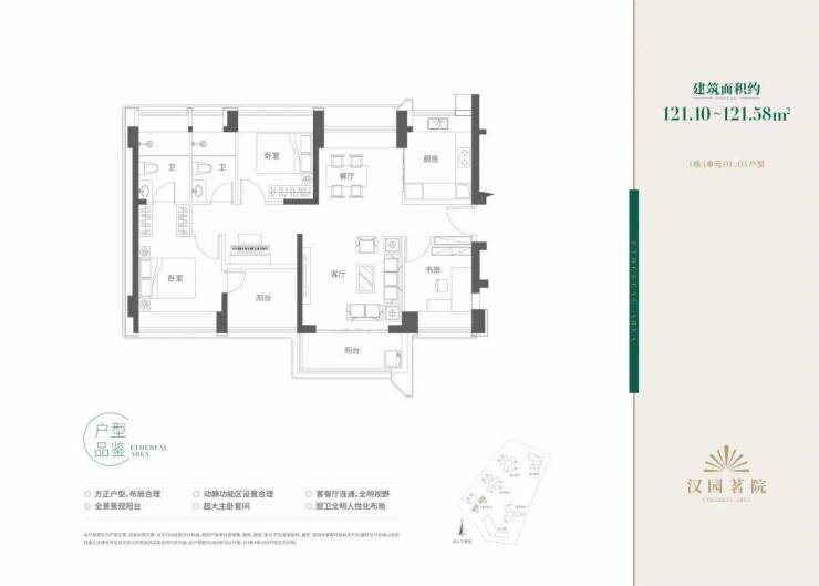 121㎡4房2厅2卫:2条腿,位于1栋4单元东南朝向看花园;南北通设计,相较于110多了10㎡但多了一个房,推荐。