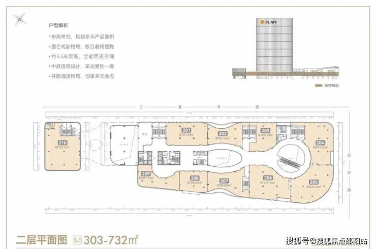 建面约303-732㎡滨海创意空间,约4.5-5.4米阔绰层高,格局方正通透,可根据需求自由创享。建面约375-1619㎡ 云端总部办公,约4.2米奢阔层高,约8.4米柱间距,180°全海景视野。