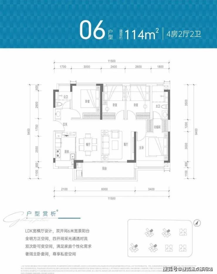 约114㎡4房2卫(1/2/3/4栋06户型)