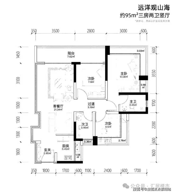 •95㎡三房:U型厨房+LDK一体化厅堂(面宽4.2米),主卧配备270°转角飘窗,山景化作私人幕布;