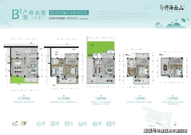 从负二到三层,该户型买三层享5层,即使不带露台和花园,实际可用面积也约有312平。