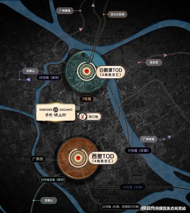 项目交通便利,距离地铁1号线坑口站约800米,步行10分钟左右可达,快速通达天河、越秀等中心城区。白鹅潭站、西塱站等交通枢纽近在咫尺,未来还将接入如意坊站及其他多条地铁线路,形成多维交通网络。