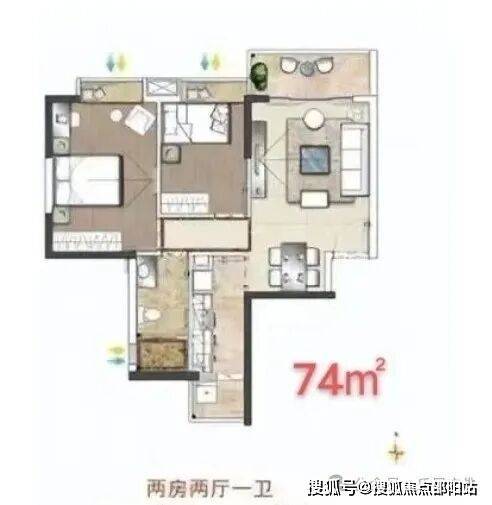 户型面积多元:74-105平两至三房,满足客户刚性居住需求