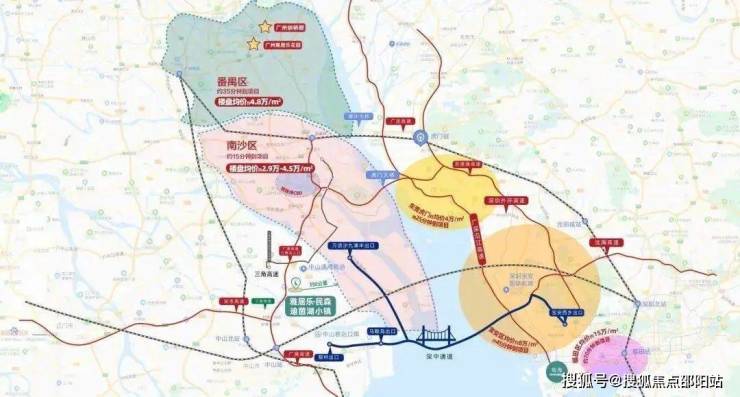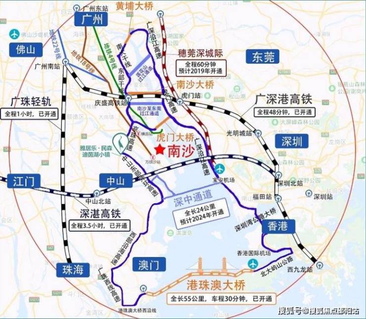 15分钟→南沙 20分钟→万顷沙地铁站(18号线)25分钟→东莞 35分钟→番禺
