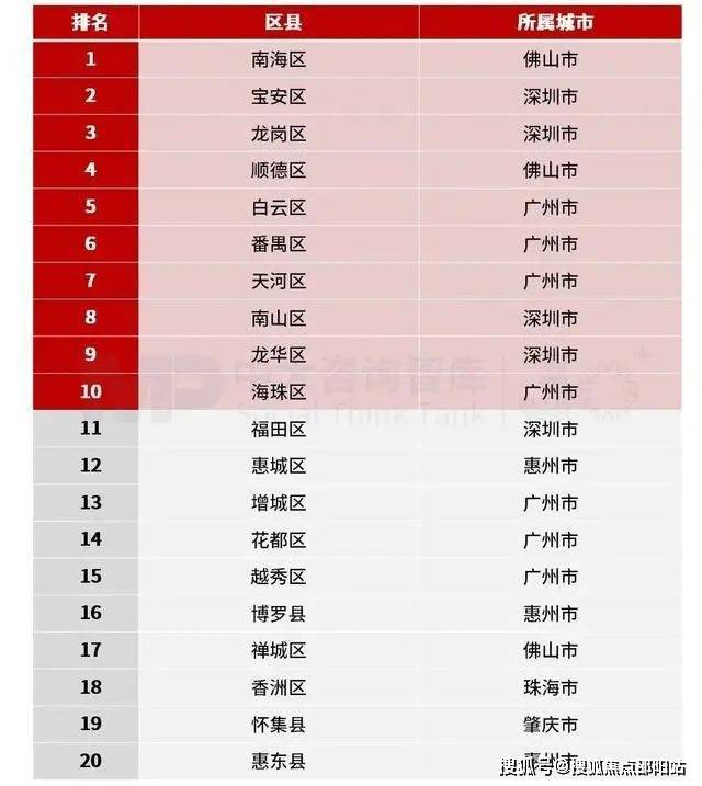 迈向“十五五”,粤港澳大湾区各区县高质量发展之人口发展前10强区县依次为:佛山市南海区、深圳市宝安区、深圳市龙岗区、佛山市顺德区、广州市白云区、广州市番禺区、广州市天河区、深圳市南山区、深圳市龙华区、广州市海珠区。