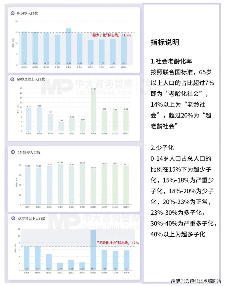 1. 2020年,前10强区县普遍进入“超少子化”社会,广州市海珠区老龄化初现