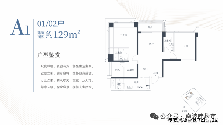 🔹1栋一单元A1、A2户型:面积约为129㎡