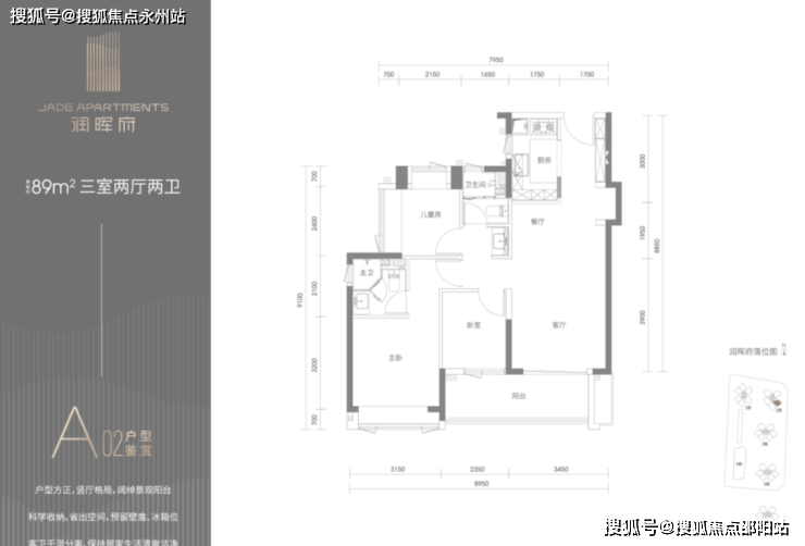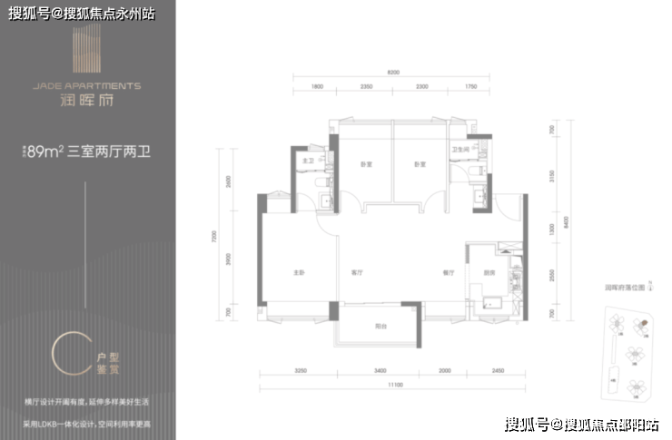 在售的是89㎡户型。4种户型设计,其中A01、A02均为竖厅,属于传统三房二卫,户型方正;B/C户型则是现在比较流行的横厅户型。
