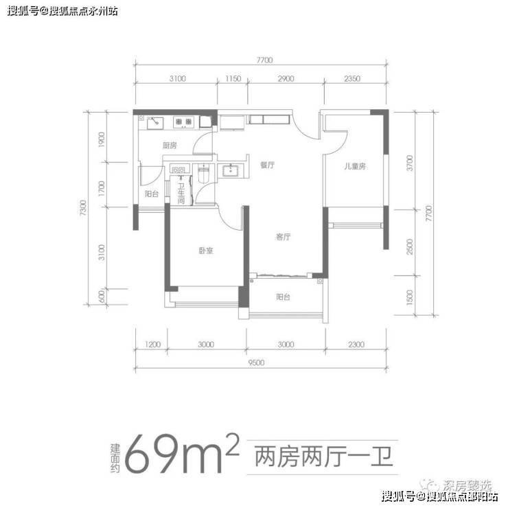 建面69㎡的两房两厅一卫户型,格局方正,布局合理,部分高层户型还可以看到山景和水库,视野景观一级棒。