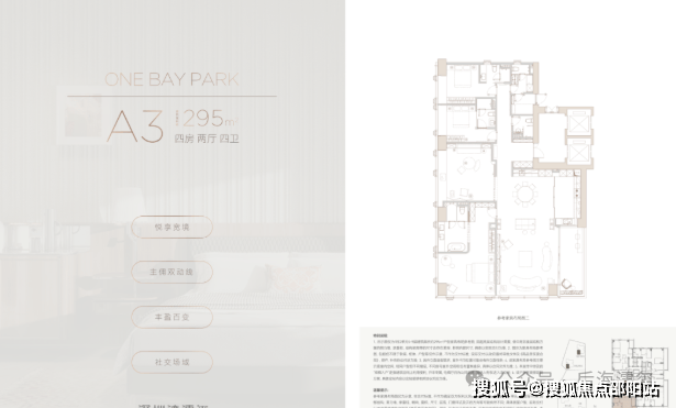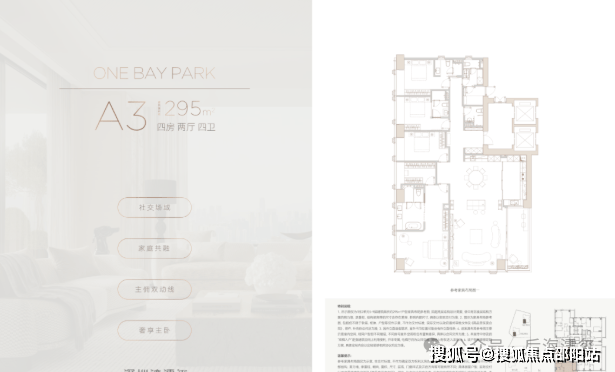 295㎡户型:仅剩最后2套,总价约4200万。4+1房四卫的设计比同面积段户型多一处灵动空间,可作为家庭厅或书房。