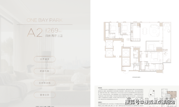 269㎡户型:目前尚有少量货量,总价定格在4100-4200万区间。四房三卫+家政套间的配置,是入门级顶豪的优选,性价比突出。
