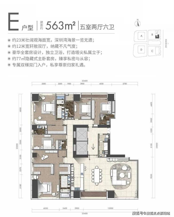 【恒裕深圳湾公寓】主力产品:162-164-223-340-343-580平/2-5房3.6米层高环幕海景公寓;60-320平/2-5房4.5米层高奢想创意空间。项目优势:⒈空中泳池会所享受,在阅历之外。⒉高端进口不锈钢超越时间的建筑之美,采用与平安金融中心、春笋同等不锈钢材质,如置身滨海大道,可一窥立面折射出的迷人光芒。⒊奢适空间尺度,营造非凡生活质感:约2.45m(幕墙玻璃宽幅)约3.6m(奢阔层高)约11m (公寓挑高大堂)约23m(观海面宽);有两套343平米高楼层,可以更名;