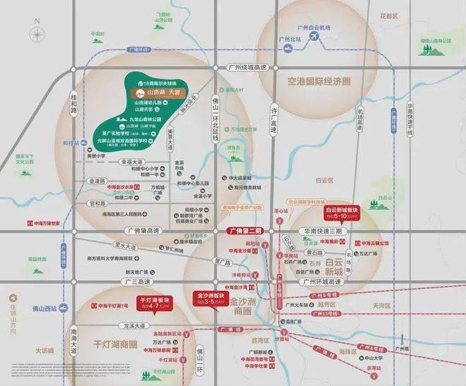 中信山语湖·天誉位于广佛交界——白云西里水板块,处于新白云机场、广州市中心和佛山市中心的三角几何中心,地块四周路网发达。