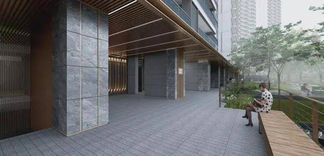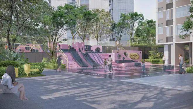 组团配套:约60米宽入口空间、一轴五幕山水逸境、山林剧院、共享客厅、黄花风铃木主题大道、主题全龄活动区、架空层无风无雨归家。