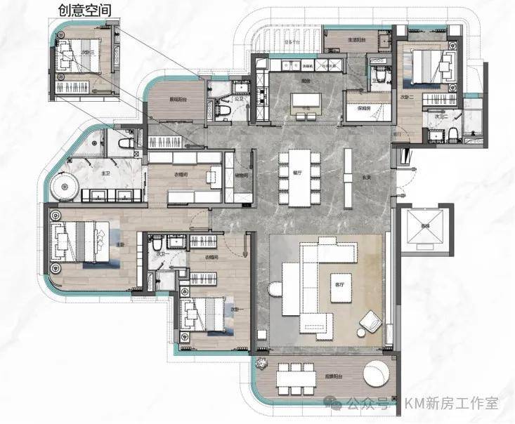 顶豪配置:全套房设计、主仆动线分区,SMEG五件套奢厨、德国柏丽橱柜及高仪卫浴,定义塔尖圈层的精工标准。