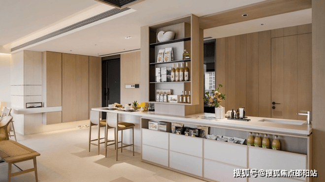亮点一:社交悦厨空间打破传统厨房封闭格局,创新打造开放式社交厨房。核心中岛台与延伸餐桌的无缝衔接,既是高效备餐区,亦是惬意的早餐吧,让烹饪过程与亲情互动自然交融,提升空间活力与情感温度。