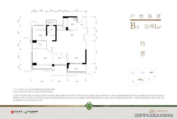 91㎡的4房2厅2卫,设计的是经典竖厅格局,进门入户玄关,客厅3.5米开间,动静分区,三开间朝南,4个卧室分别做到了主卧13.8㎡/次卧8.66㎡/次卧7.2㎡/次卧5.46㎡(包含墙体飘窗),主卧+1个次卧270°飘窗,U型厨房,卫生间三段式分离,得房率约103.7%(包含赠送),西南或东南朝向。
