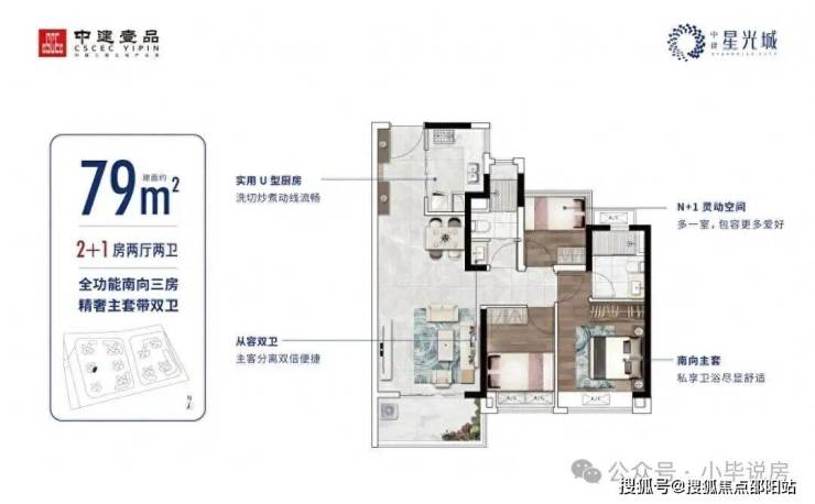 79㎡南向三房,主卧带独立卫生间,区域极高性价比