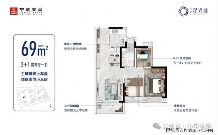 ⭐ 低至约69㎡即可实现三房格局