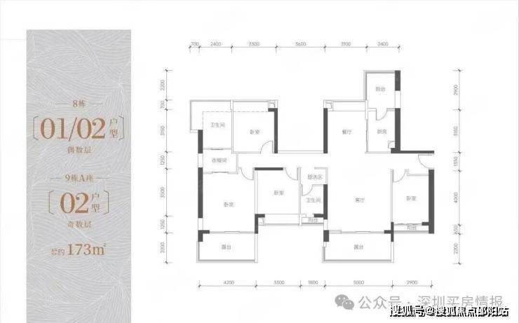 约173平4房2厅2卫(8栋01-02偶数层,9栋A-02奇数层)