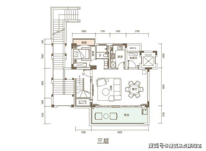 上叠面积134㎡(为3.4层)三房两厅三卫(可实现3➕1房)赠送顶楼露台